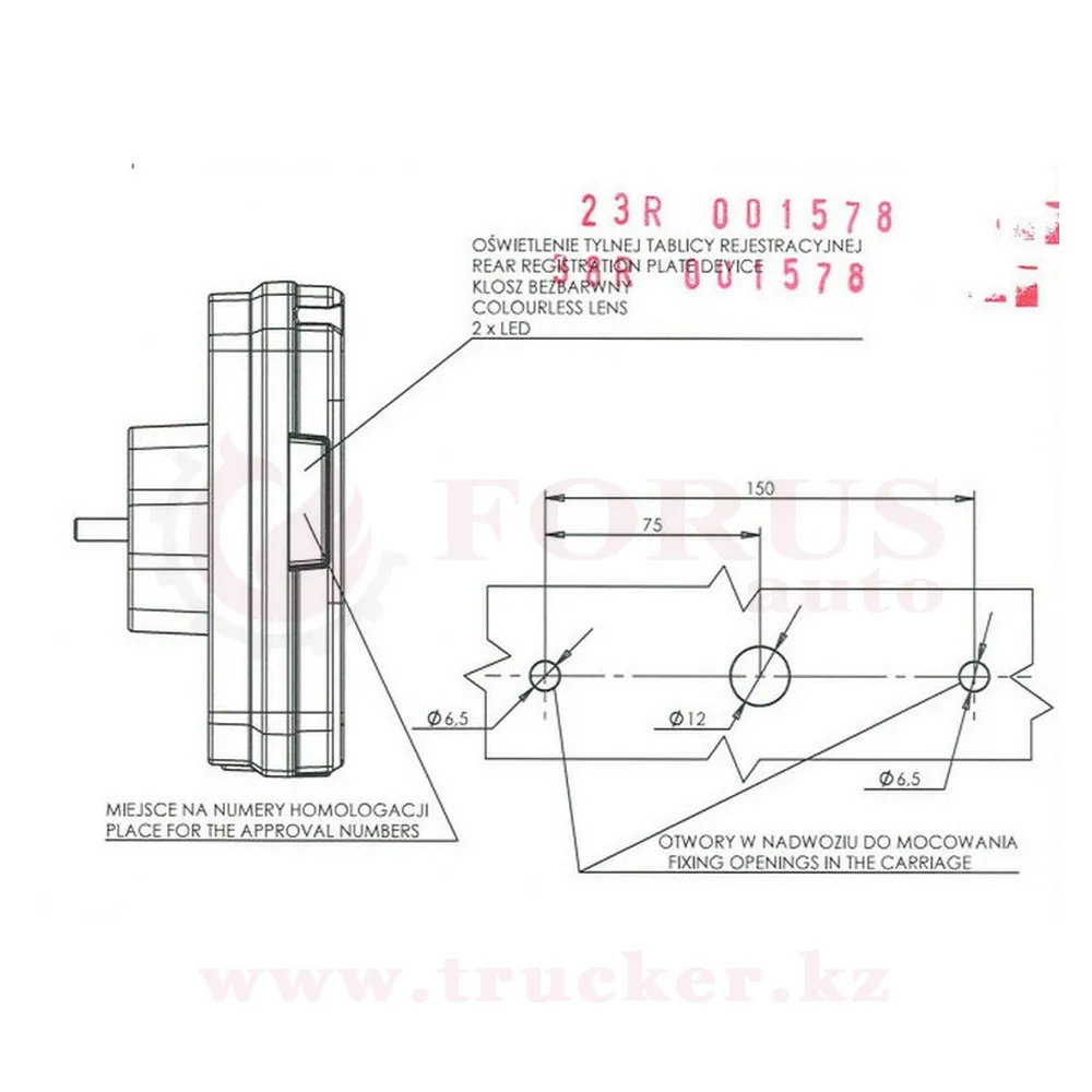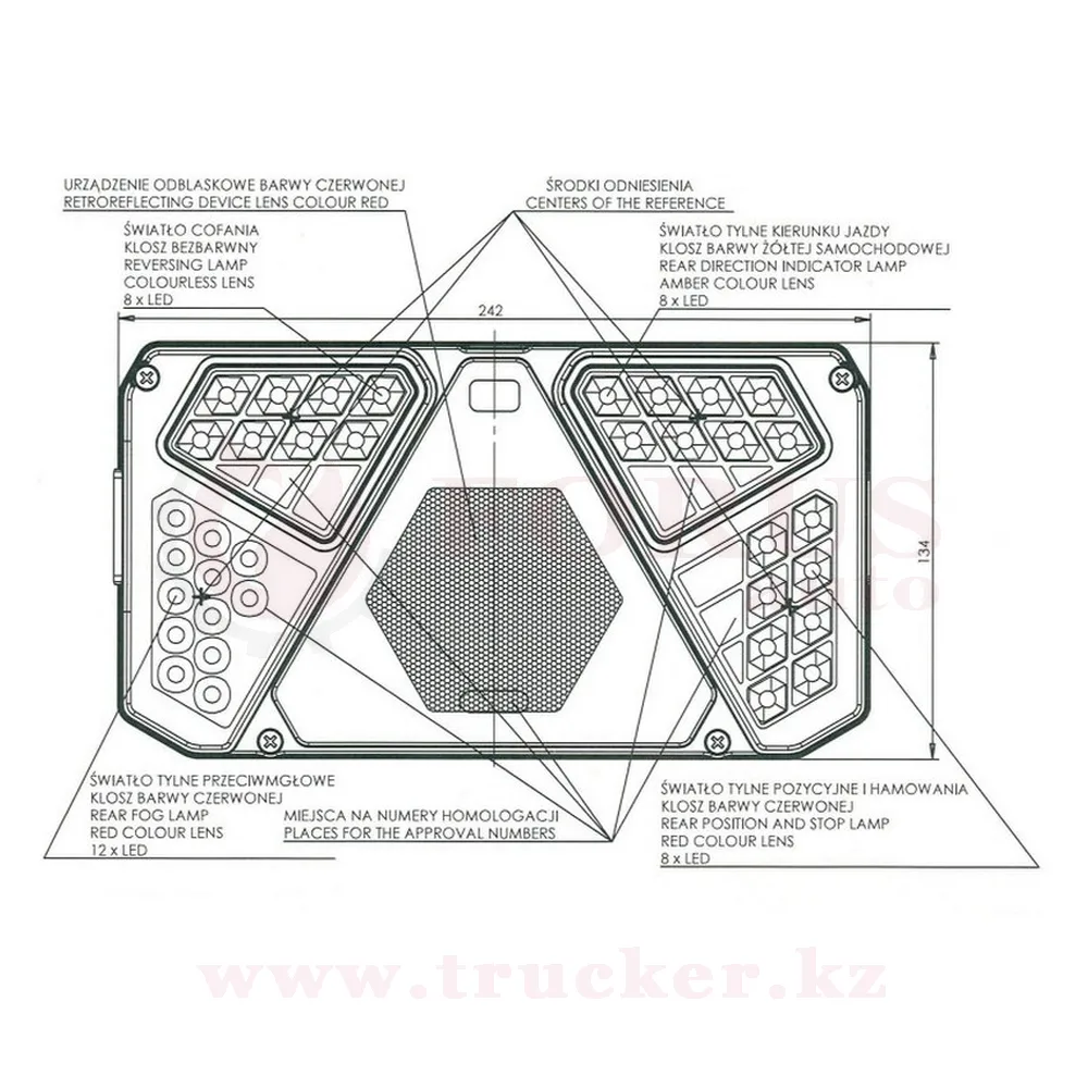 Фонарь многофункциональный задний W137 + рожок W48 с разъемом TYCO сзади (1031Z/1034Z)