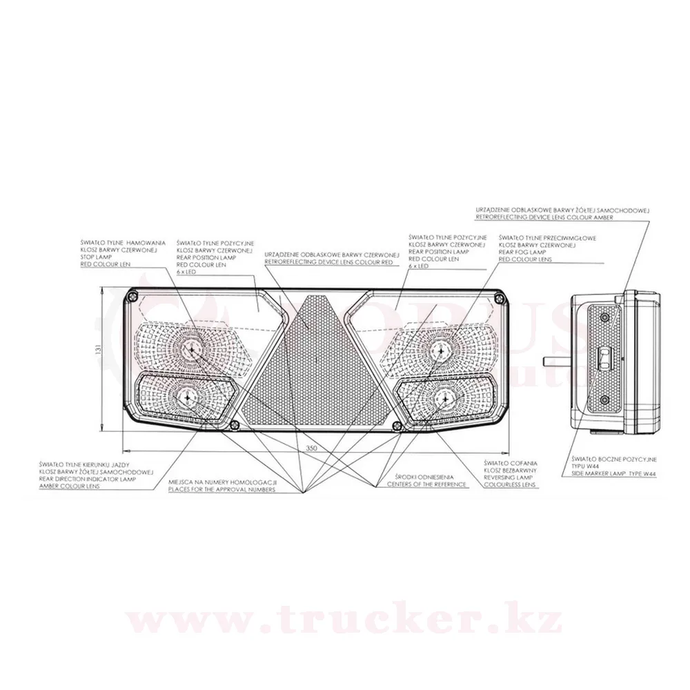 Фонарь многофункциональный задний W137 + рожок W48 с разъемом TYCO сзади (1031Z/1034Z)