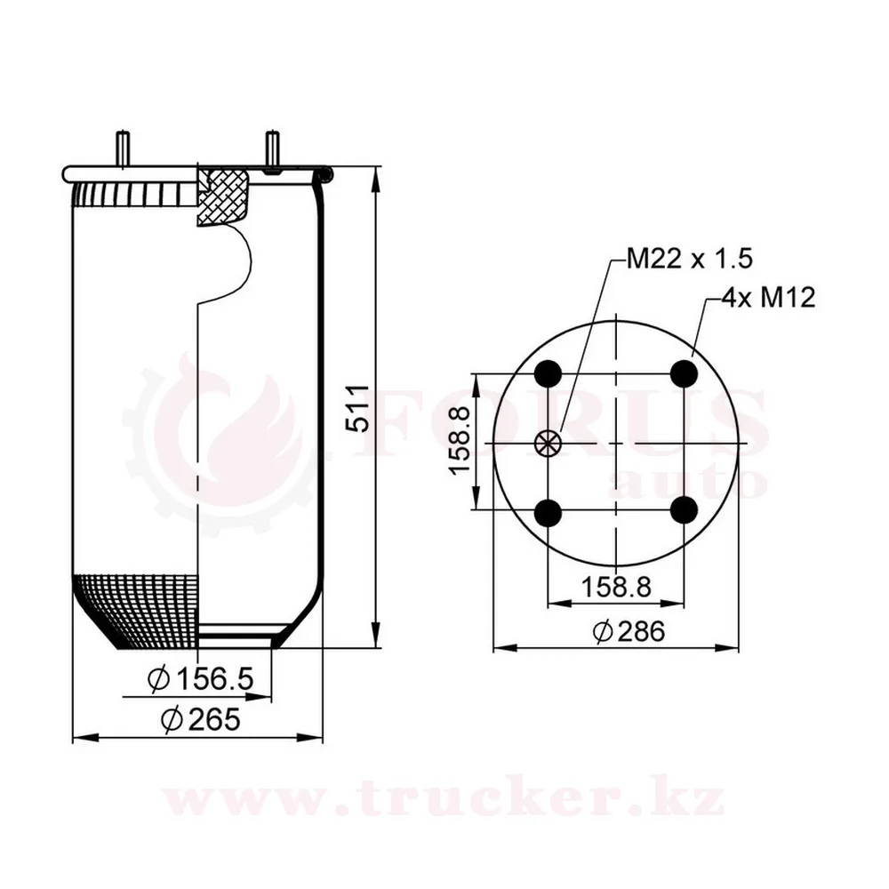 Пневмоподушка 813MB/O без стакана (SAF, WEWELER, Kassbohrer, Scania, Renault)