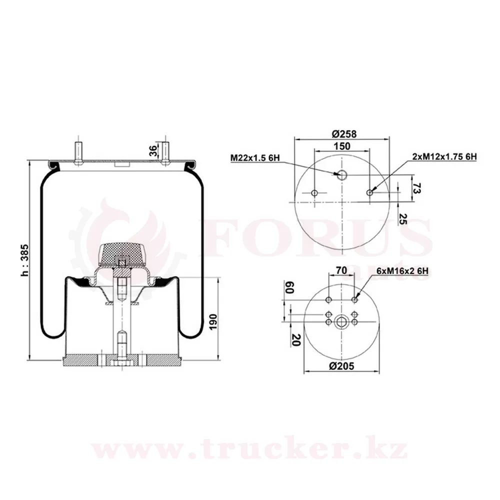 Пневмоподушка 941 MB с пласт. стаканом 6xM16 (BPW, Schmitz, Scania)