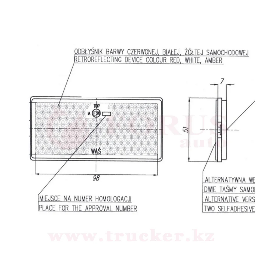 Светоотражатель прямоугольный UP105 (105×48) (49P/50P/51P)