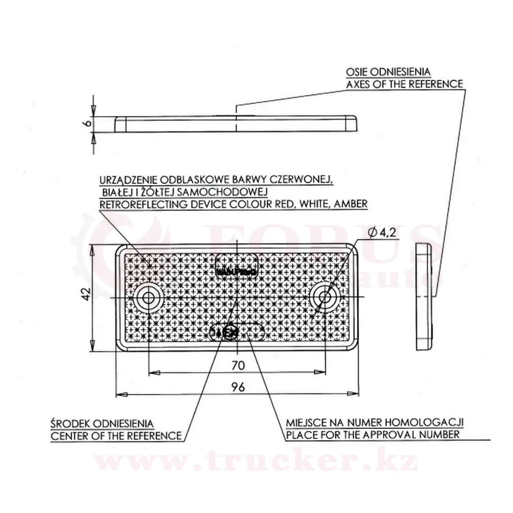 Светоотражатель прямоугольный UP96 (96×42) (846/848/850)